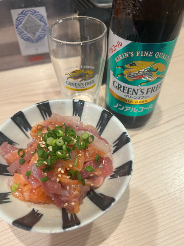写真はお通しの、サーモンユッケ?